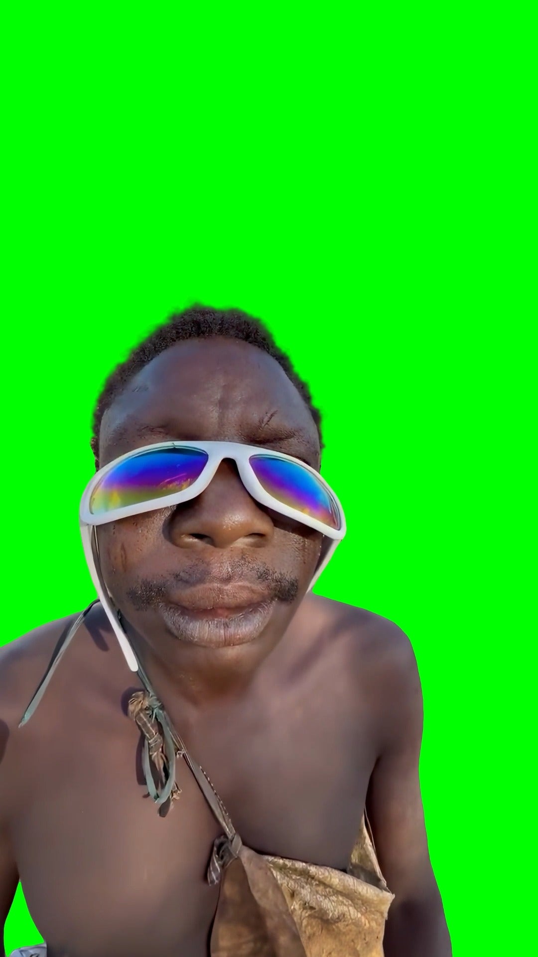 Green Screen Meme Template of a Tribal African Man trying to wear the sunglasses but he puts it on wrong by balancing the middle of the glasses on his nose