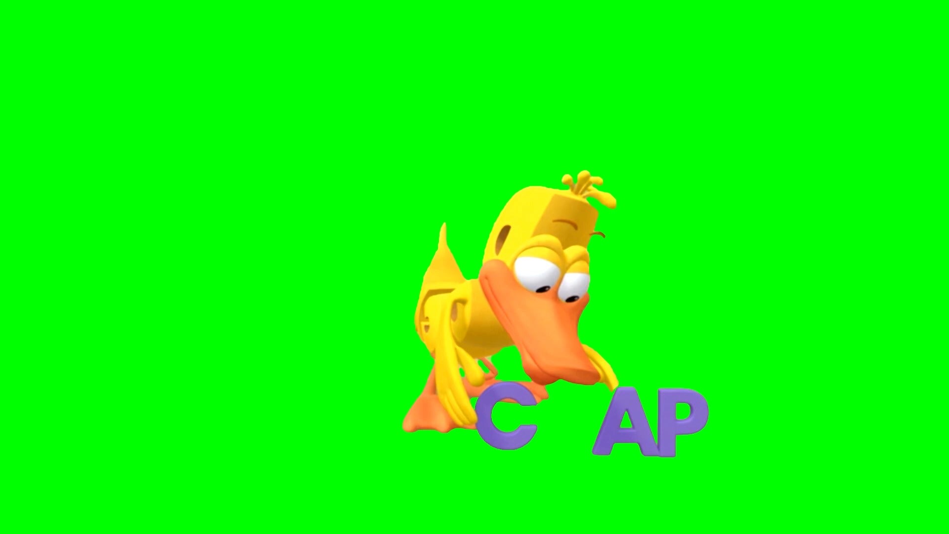 Green Screen Meme Template of Duck from Word World TV show spelling the world "CAP" and saying ''C A P, CAP!''