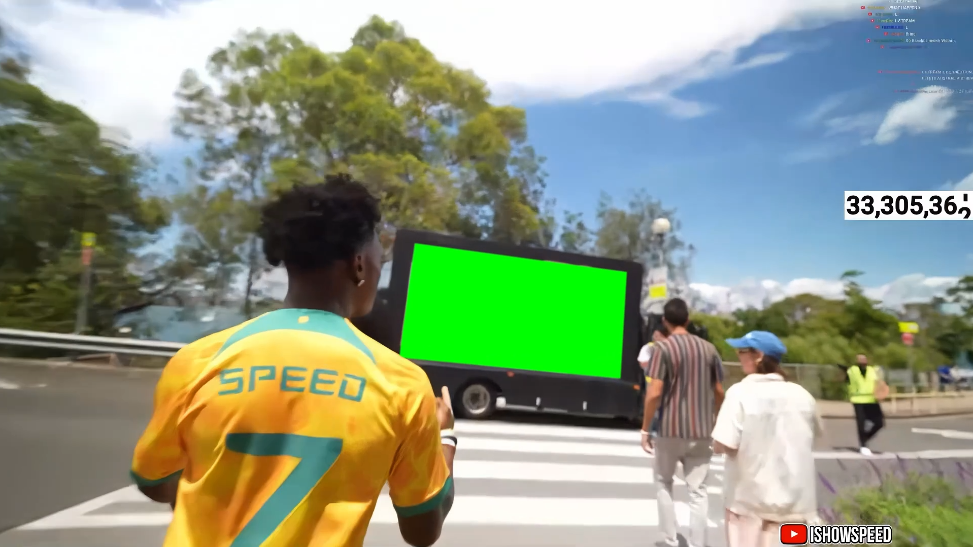 Green Screen Meme Template of IShowSpeed getting angry at a Truck in Australia that is showing a picture of IShowSpeed kissing Lionel Messi