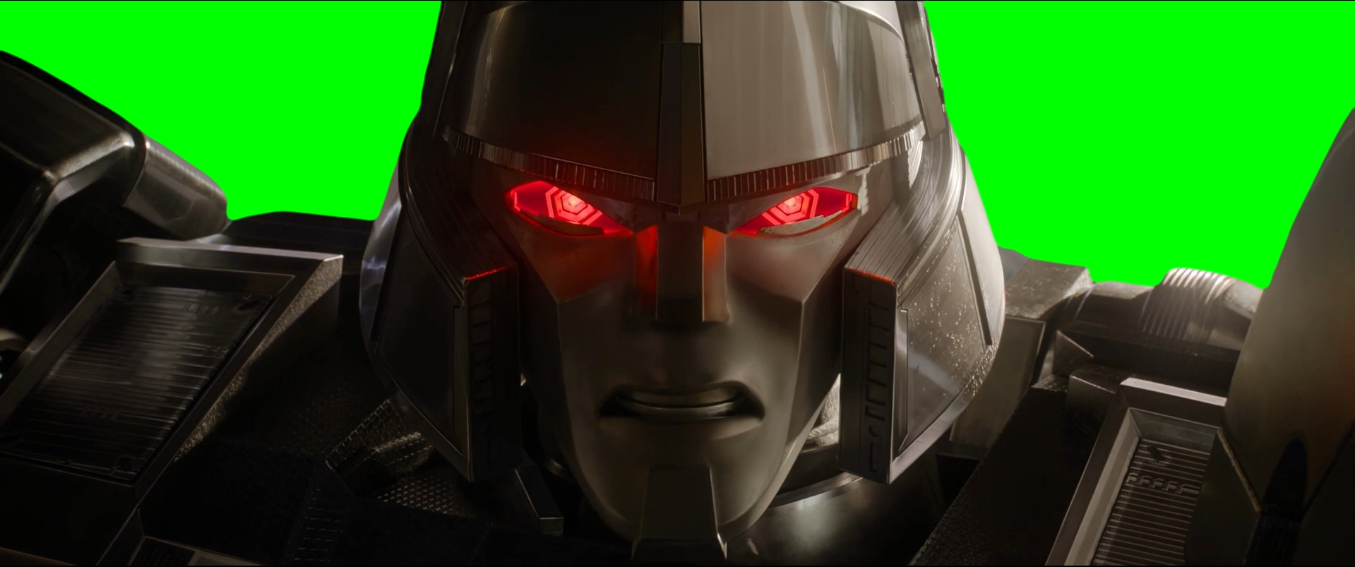 Green Screen Meme Template of Megatron saying "I'm done saving you!" to Optimus Prime after shooting him in the Transformers One movie