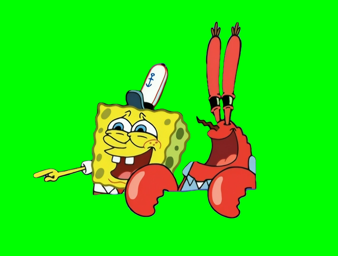 Green Screen Meme Template of Mr Krabs saying "Look at him choke!" and laughing with SpongeBob at the fish customer