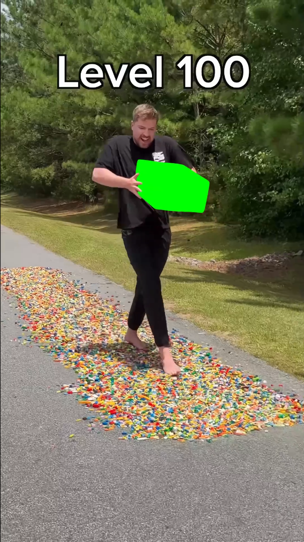 Green Screen Meme Template of MrBeast running and delivering an Amazon Delivery Box in different difficulty levels from Level 1 to Level 1000