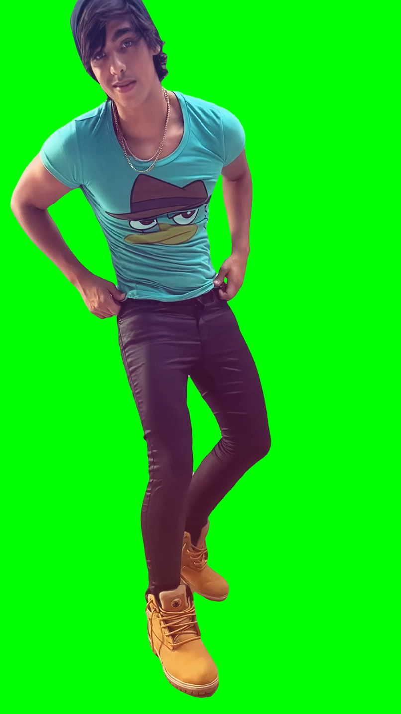 Green Screen Meme Template of a man (@__ephee on Instagram) wearing a Perry the Platypus shirt and posing like a 2010 Tumblr outfit