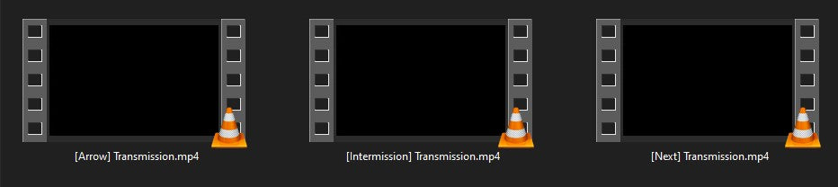 Varients include: text displaying "next"/"intermission"/">>>>>")