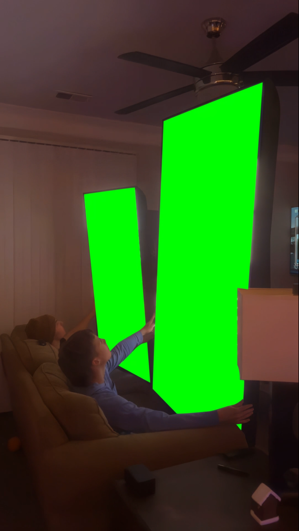 Green Screen Meme Template of Two guys (@aaronwestberry on instagram) watching Instagram Reels on Giant Screens