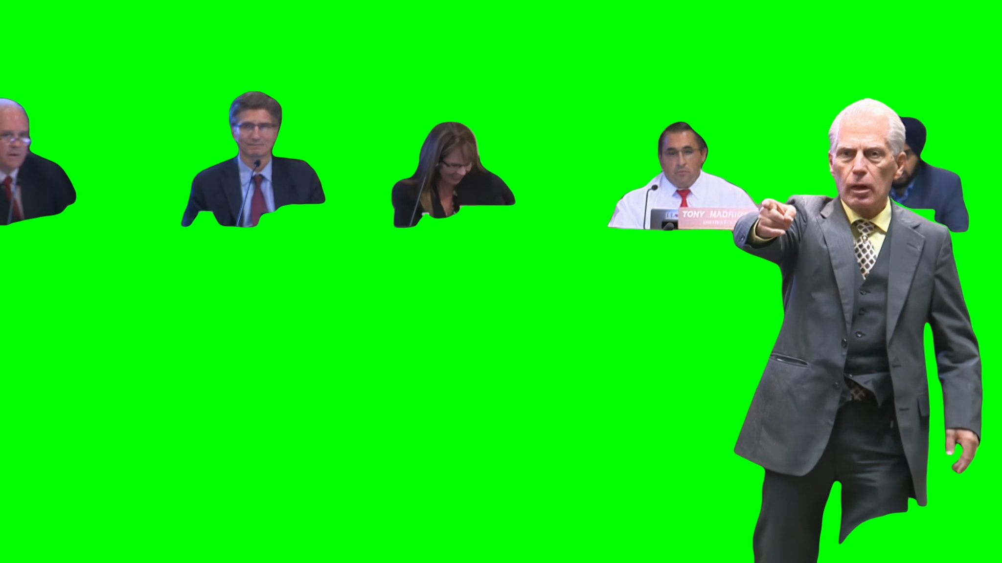 Green Screen Meme Template of a man behind the "Straight Pride" rally saying "We Are A Totally Peaceful Racist Group" during a city council meeting