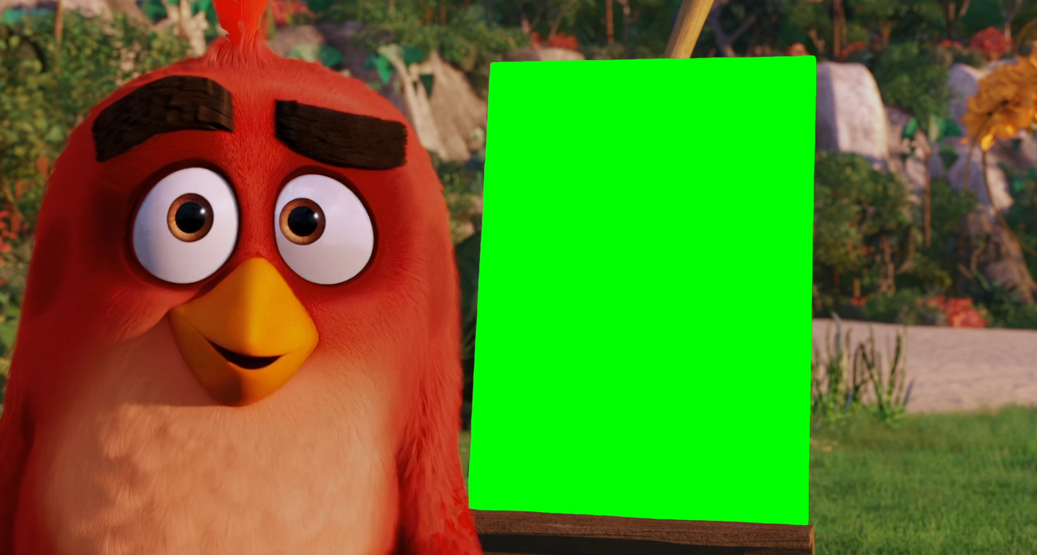Green Screen Meme Template of Red the Angry Bird showing a painting to Leonard the Pig
