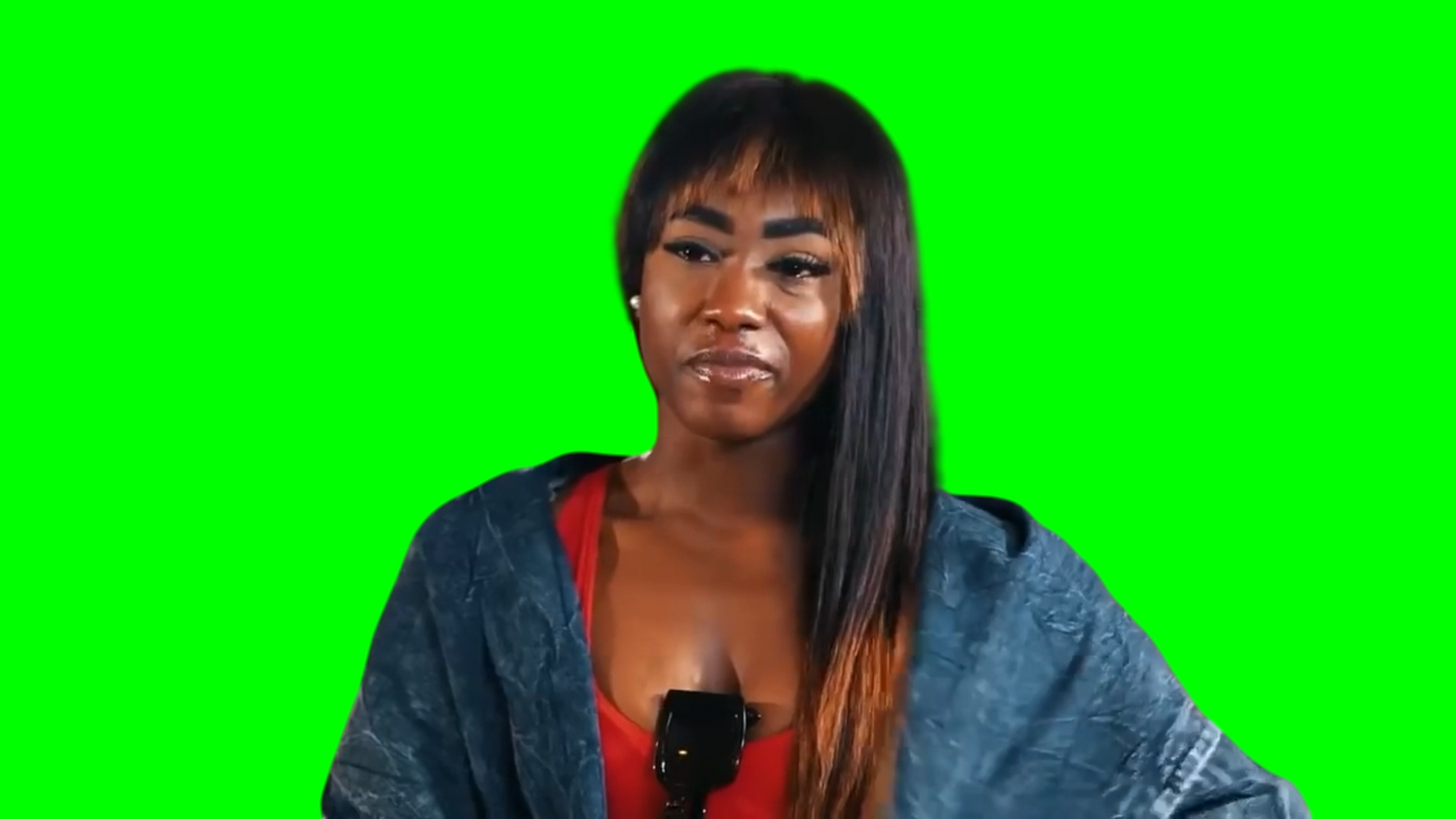 Green Screen Meme Template of a black woman saying she was pregnant with twins and she had to get an abortion to Joseline Hernandez and another woman said "Damn, Double Homicide" in the back