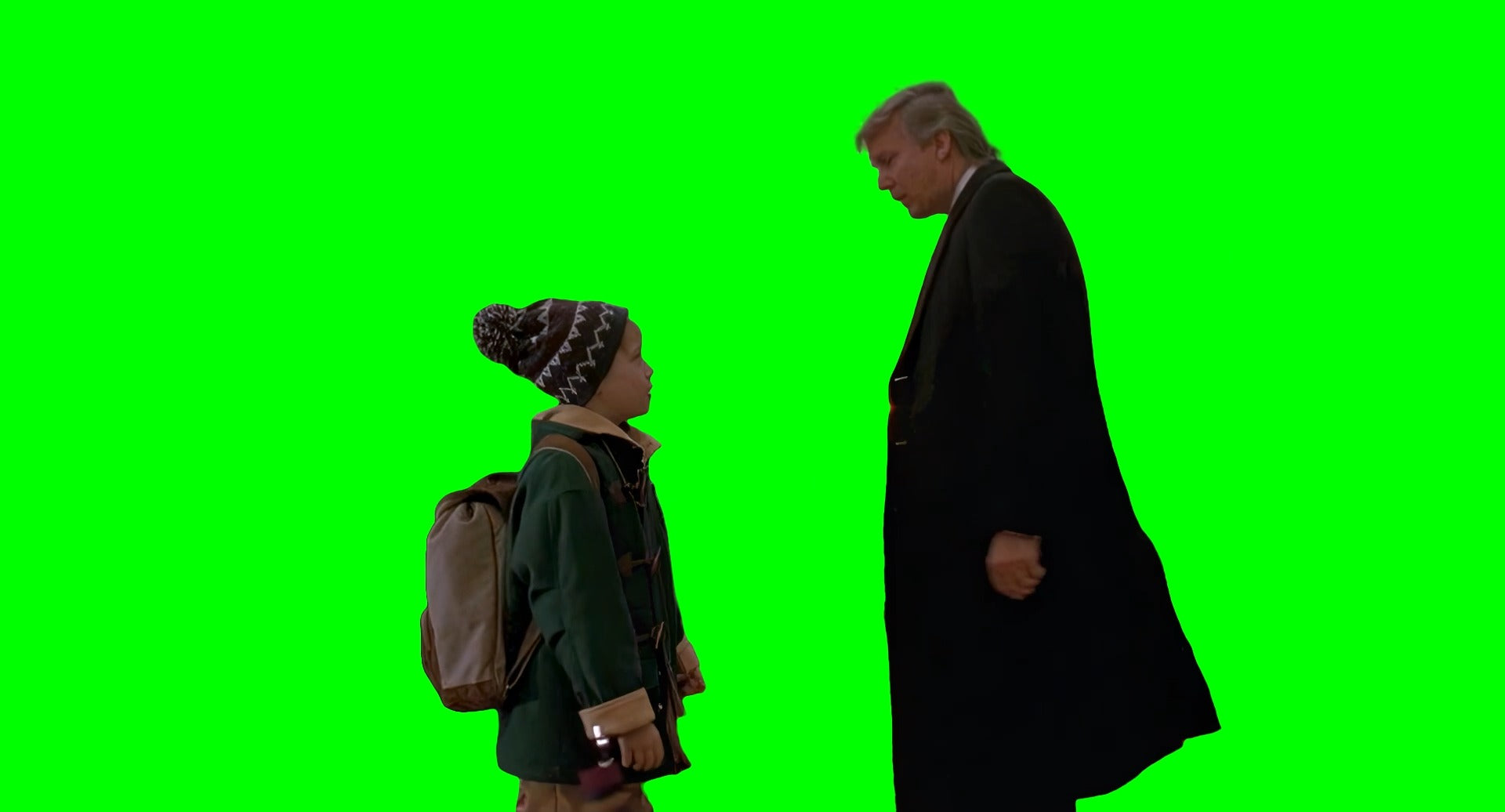 Green Screen Meme Template of Kevin McCallister being in the Plaza Hotel in New York City, stopping Donald Trump and asking "Excuse me, where is the lobby?"
