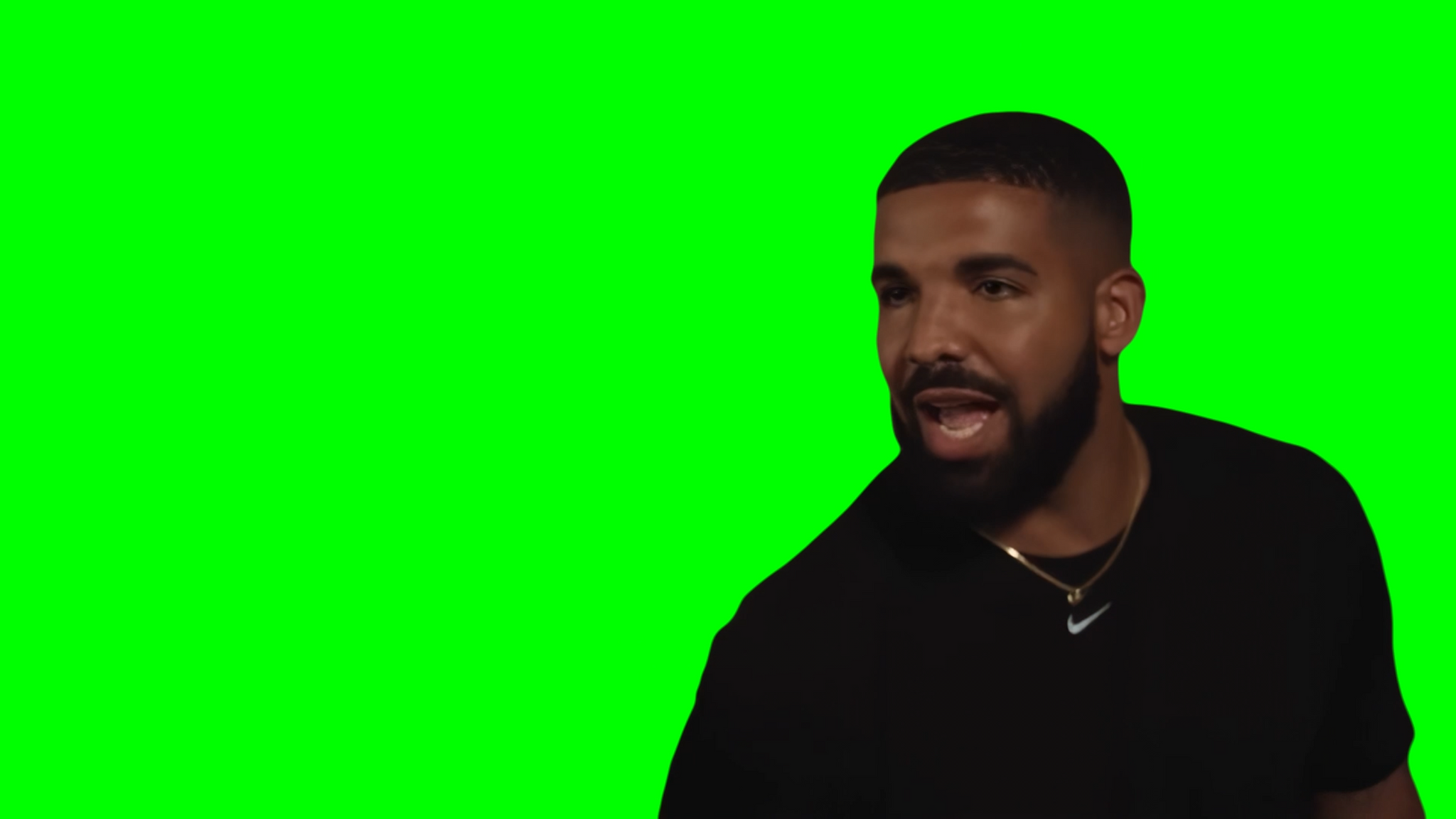 Green Screen Meme Template of Drake telling a group of women "Please, enter at your own risk" as they are heading to a party