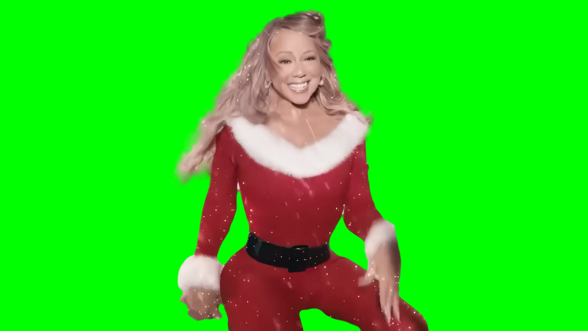 Green Screen Meme Template of Mariah Carey singing "IT'S TIME!" in a high pitch right before the song starts for her 2022 revival of the song "All I Want for Christmas Is You".