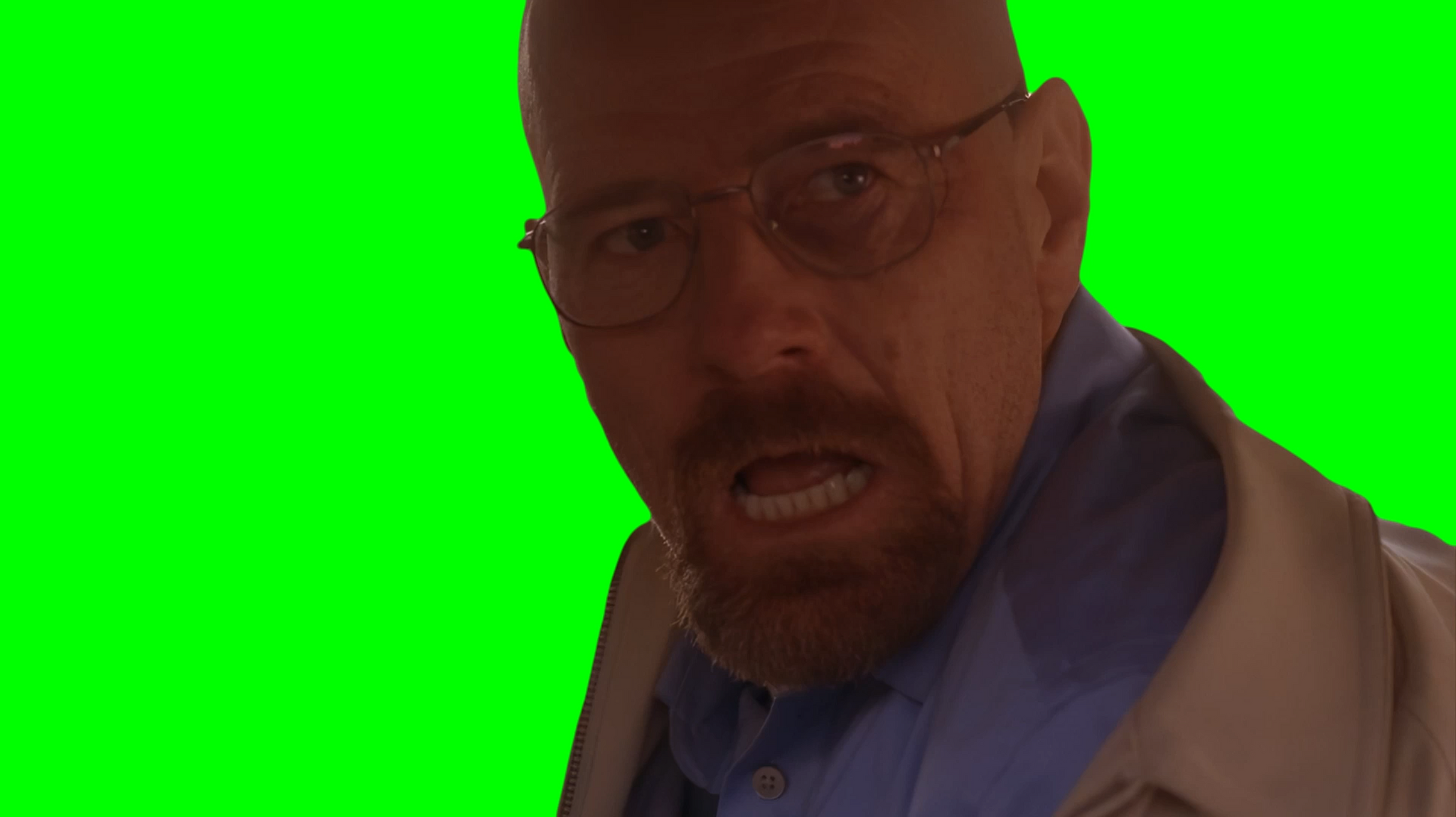 Green Screen Meme Template of Walter White screaming “HANK!” repeatedly while being locked in the car to warn Hank Schrader about the Aryan Brotherhood