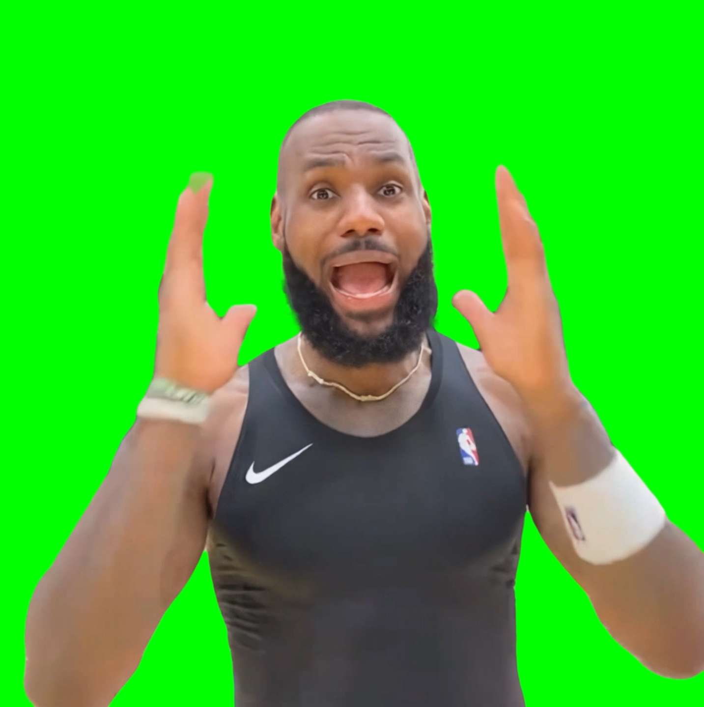 Green Screen Meme Template of LeBron James screaming after finding out he's the oldest player playing in the NBA