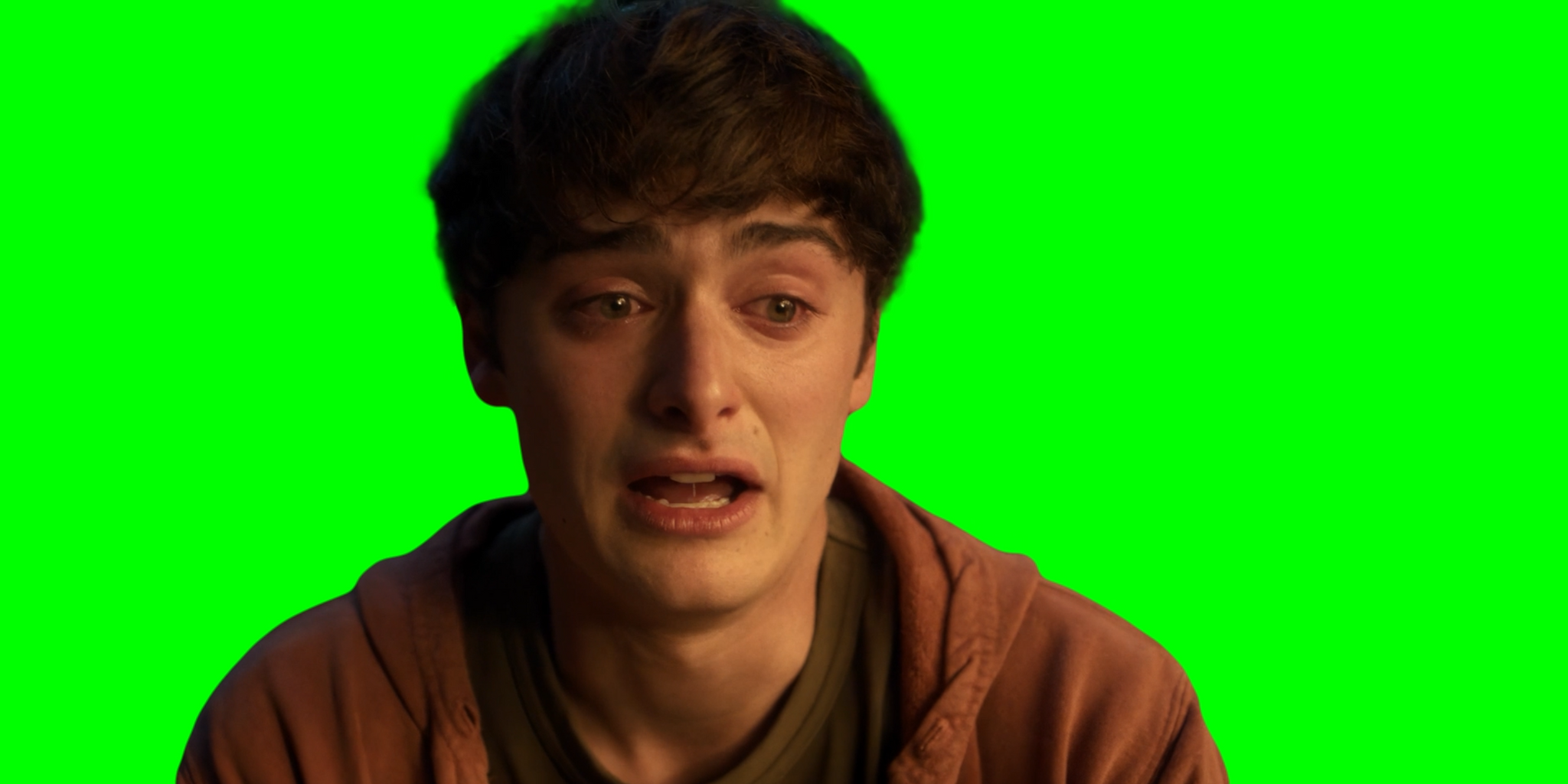 Green Screen Meme Template of Will Byers coming out to his friends and family while crying and saying "I just, I don't like girls"