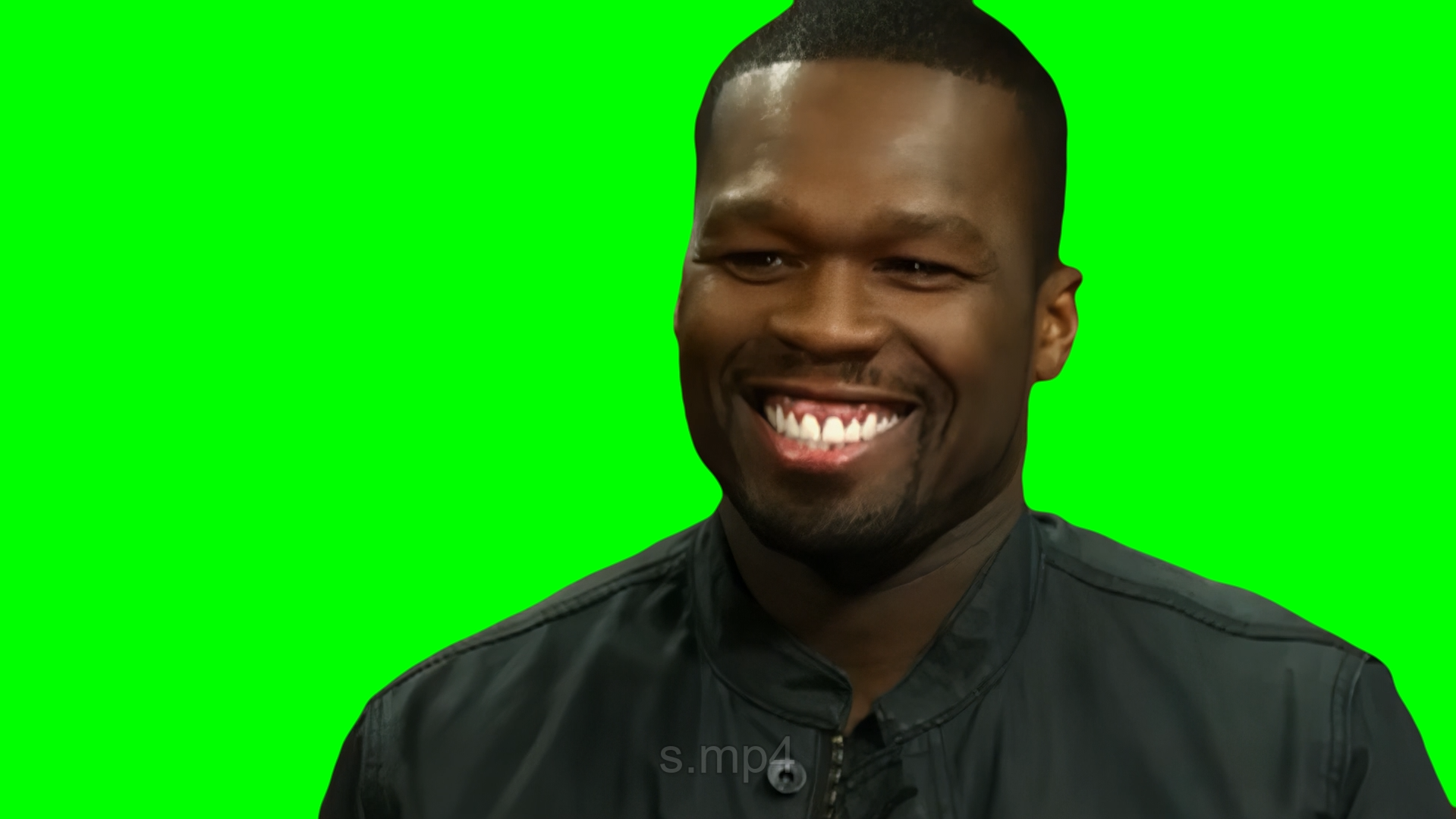 Green Screen Meme Template of 50 Cent saying during an interview that he cannot say how much he earned due to signing an NDA but he shows Larry King his perfect teeth, meaning he has earned a lot