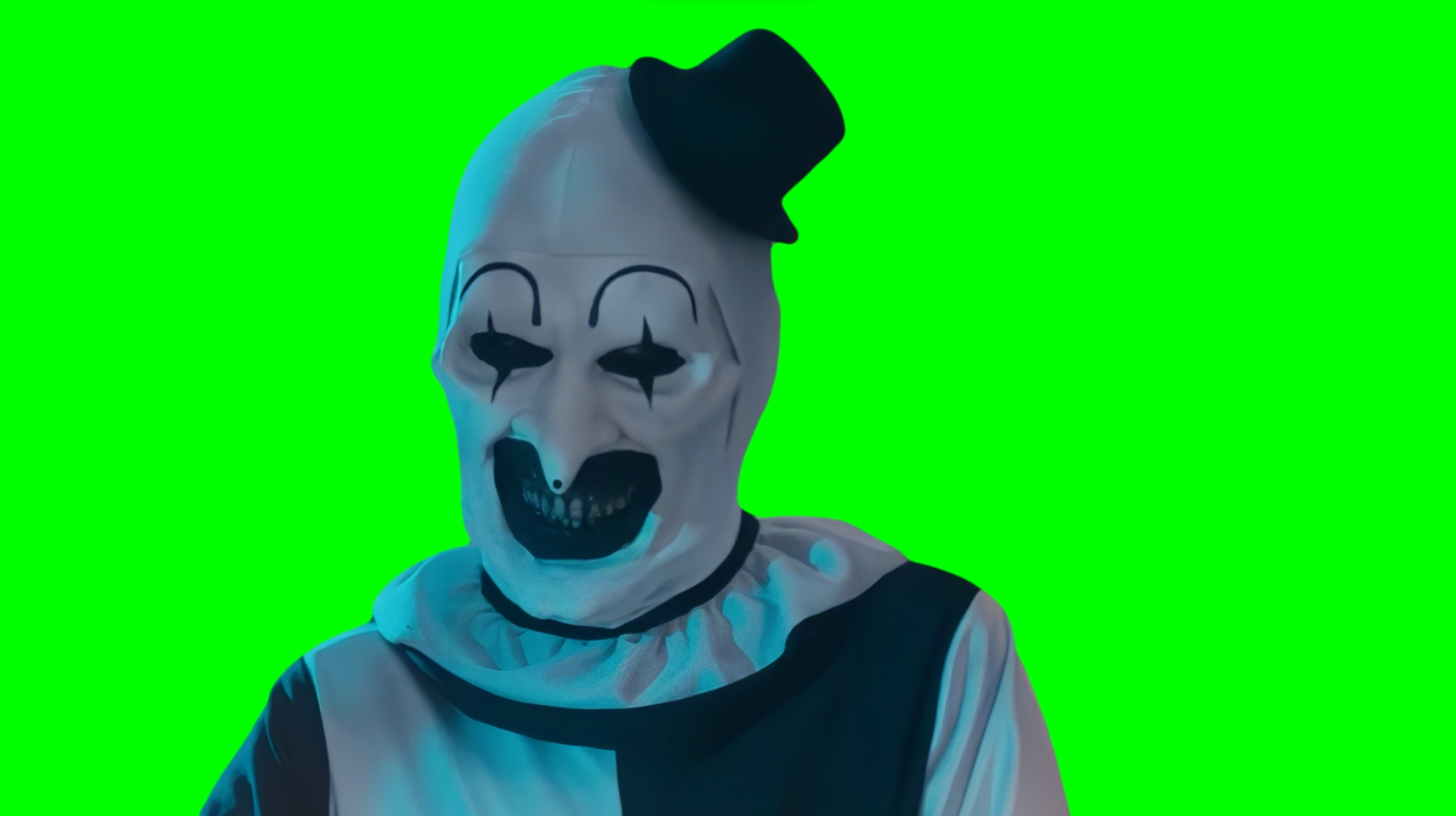 Green Screen Meme Template of Art the Clown Smiling in the Terrifier 2 movie
