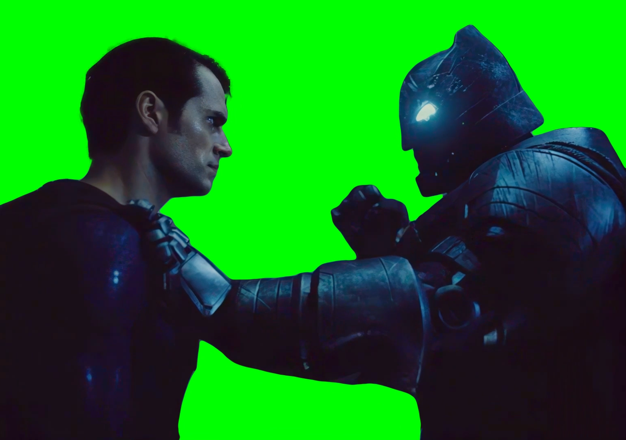 Green Screen Meme Template of Batman punching Superman during their fight in the Batman v Superman: Dawn of Justice movie