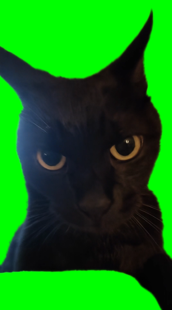 Green Screen Meme Template of a Black Cat staring at the camera aka Wee Wee Cat