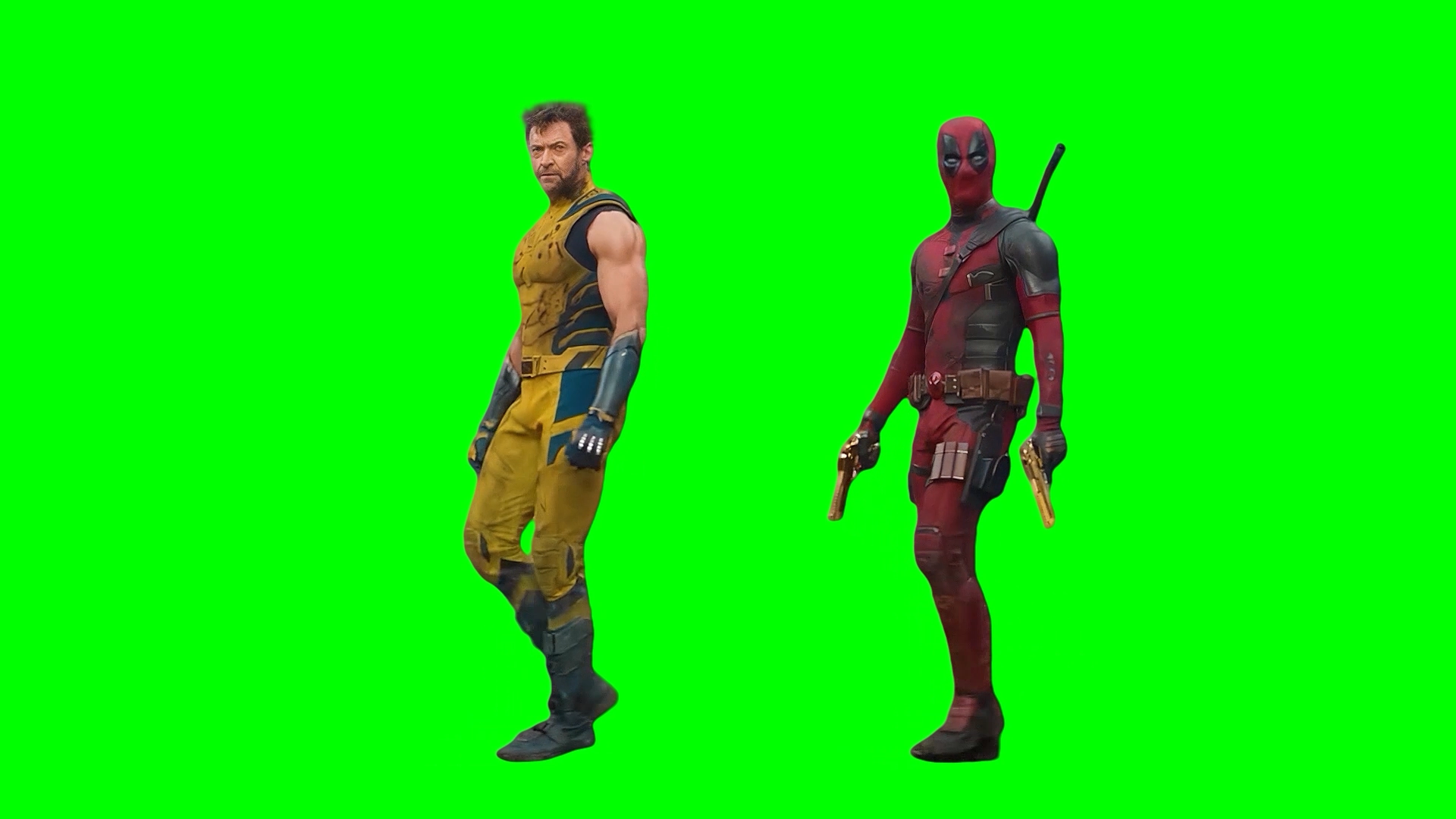 Green Screen Meme Template of Deadpool and Wolverine walking in slow motion in the Deadpool & Wolverine LFG Trailer