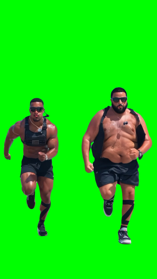Green Screen Meme Template of DJ Khaled and Ashton Hall running together on the streets as an intense workout with the loud sirens playing