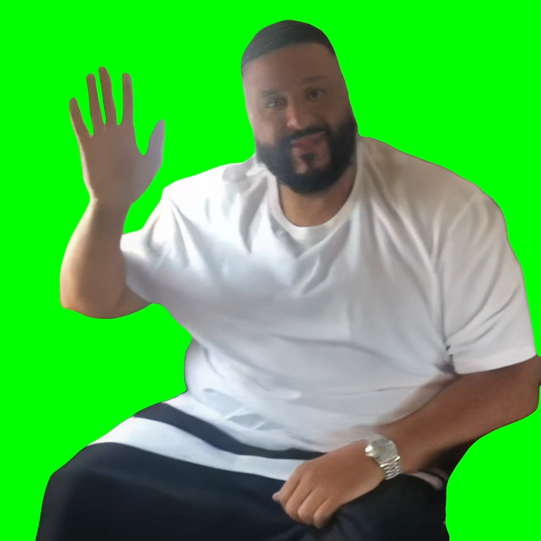 Green Screen Meme Template of DJ Khaled is waving his hand at the camera while smiling