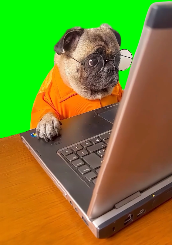 Green Screen Meme Template of a Pug Dog looking and staring at a laptop computerSource:https://www.youtube.com/watch?v=D0ox-BDmPVU