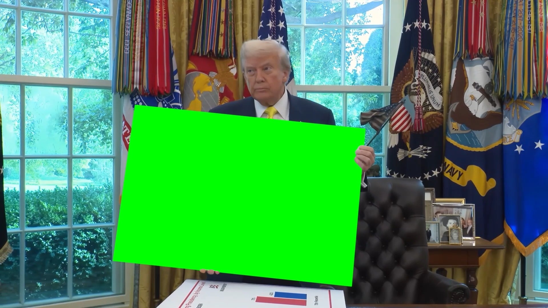 Green Screen Meme Template of Donald Trump holding a chart in his hands and saying "All new numbers" in the White Office during the Economic Announcement