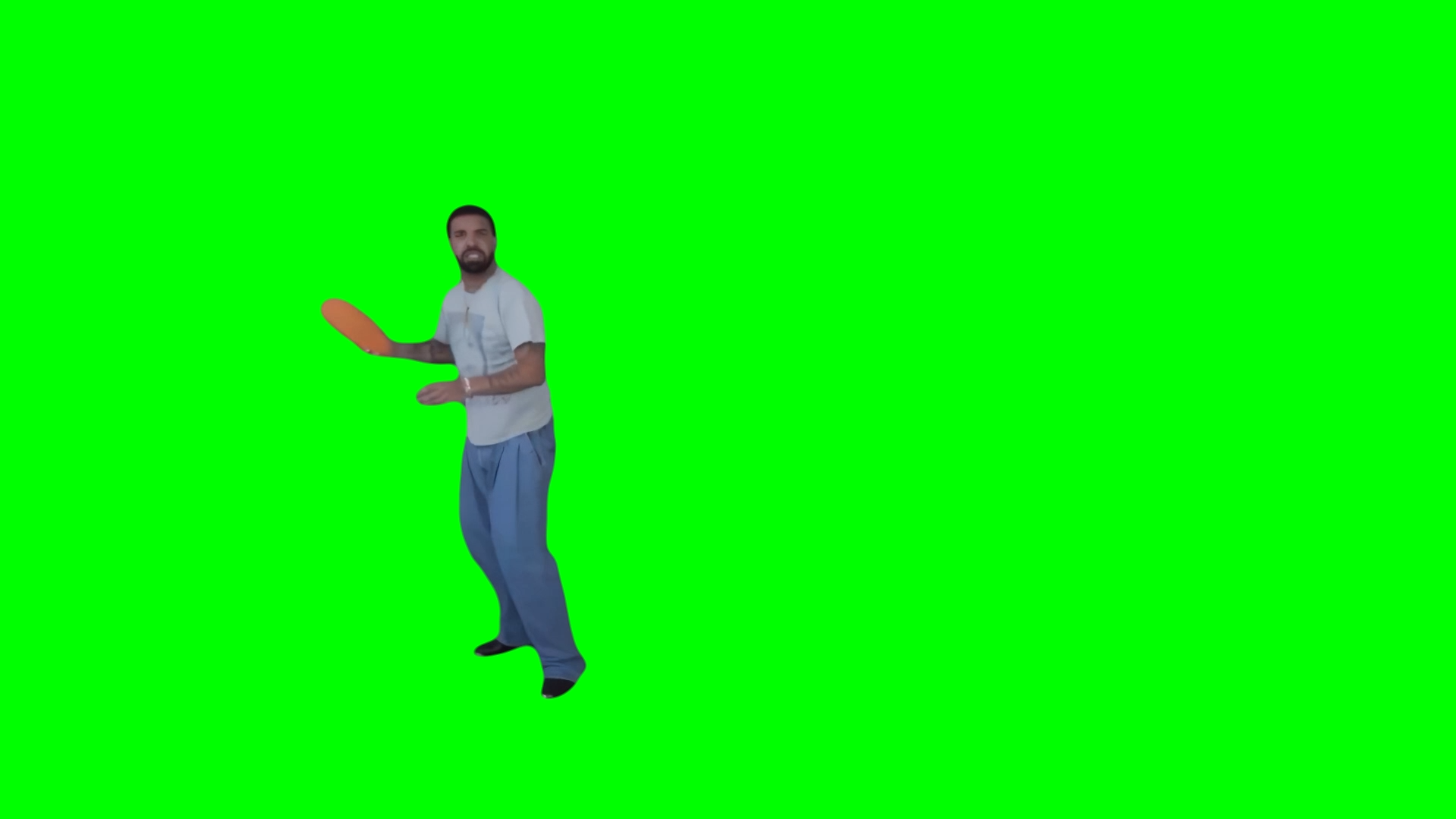 Green Screen Meme Template of Drake throwing a Slipper at the Drone that was trying to see what's in his laptop