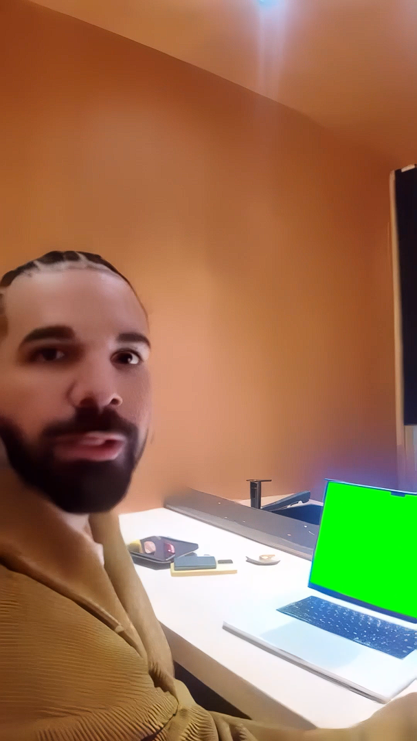 Green Screen Meme Template of Drake pressing a button on his laptop and cringing while waiting for the results