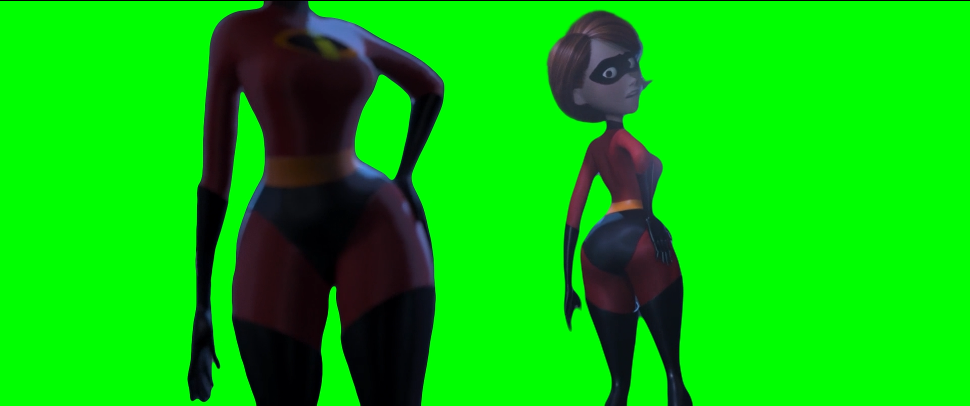 Green Screen Meme Template of Elastigirl looking at her butt meme in The Incredibles movie