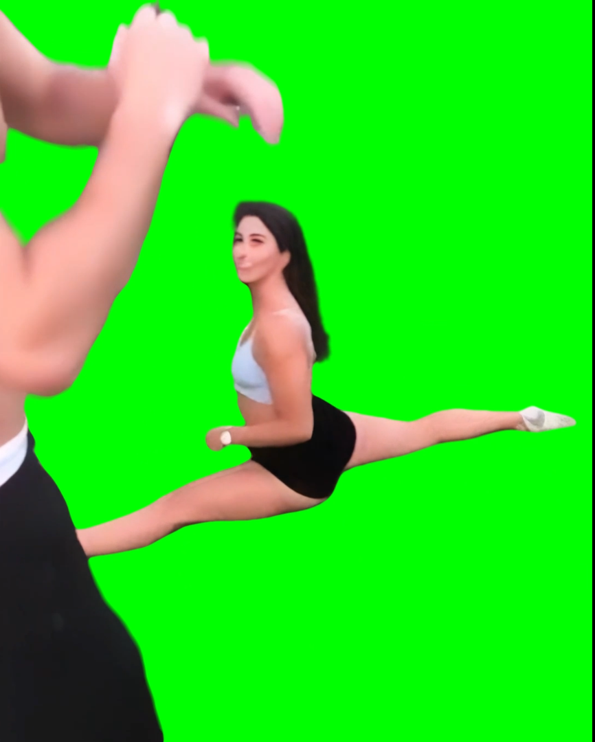 Green Screen Meme Template of a girl doing a backflip and split at the same time