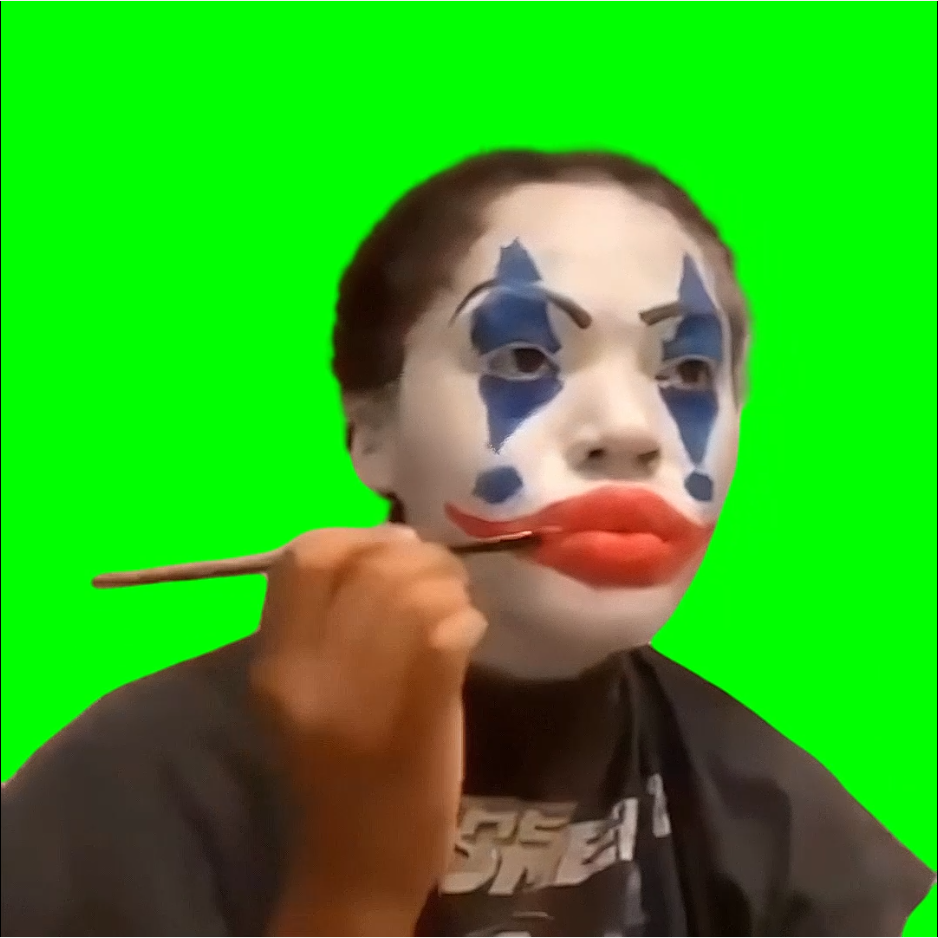 Green Screen Meme Template of a girl putting clown makeup on with a paint brushSource:https://www.youtube.com/watch?v=3AGGEFHn-HA
