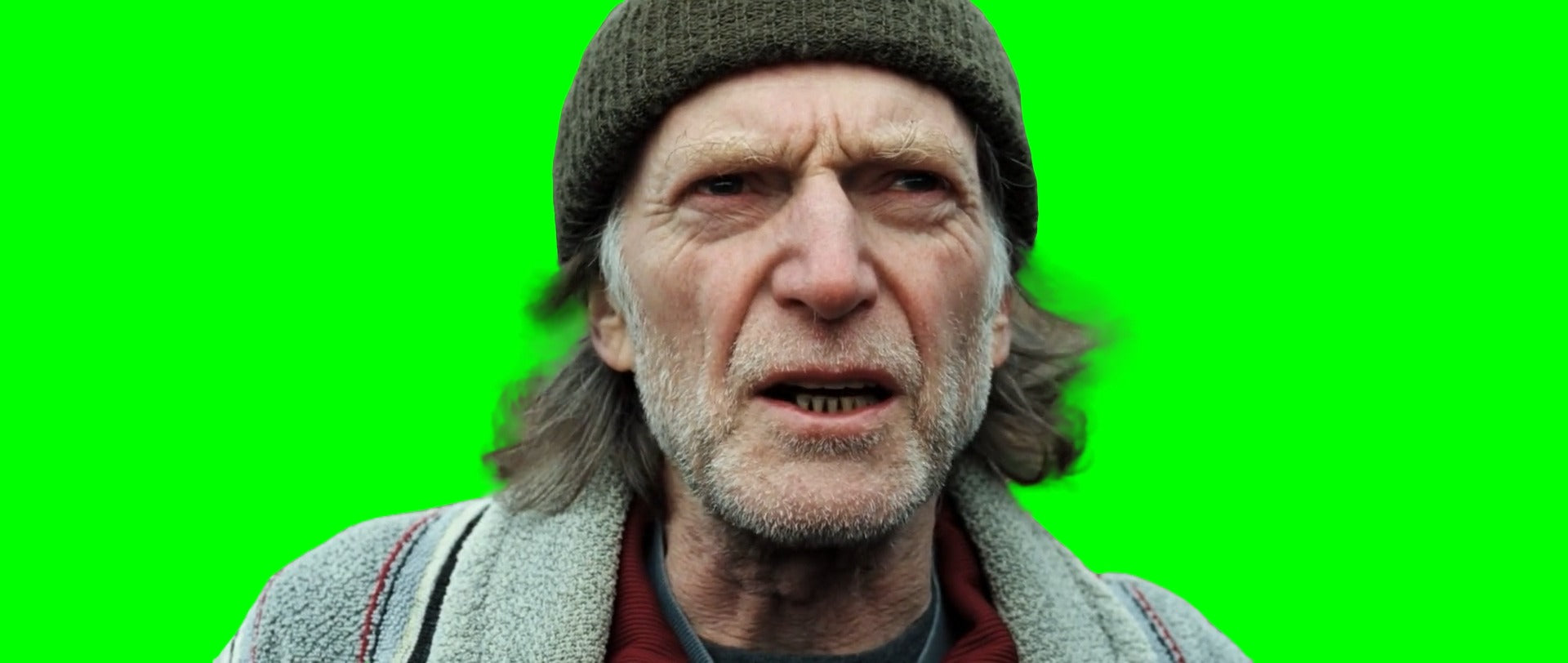 Green Screen Meme Template of an old man is saying something incomprehensible to the police, and the policeman is saying "What did he say?" to the other policemen, asking them to translate it.