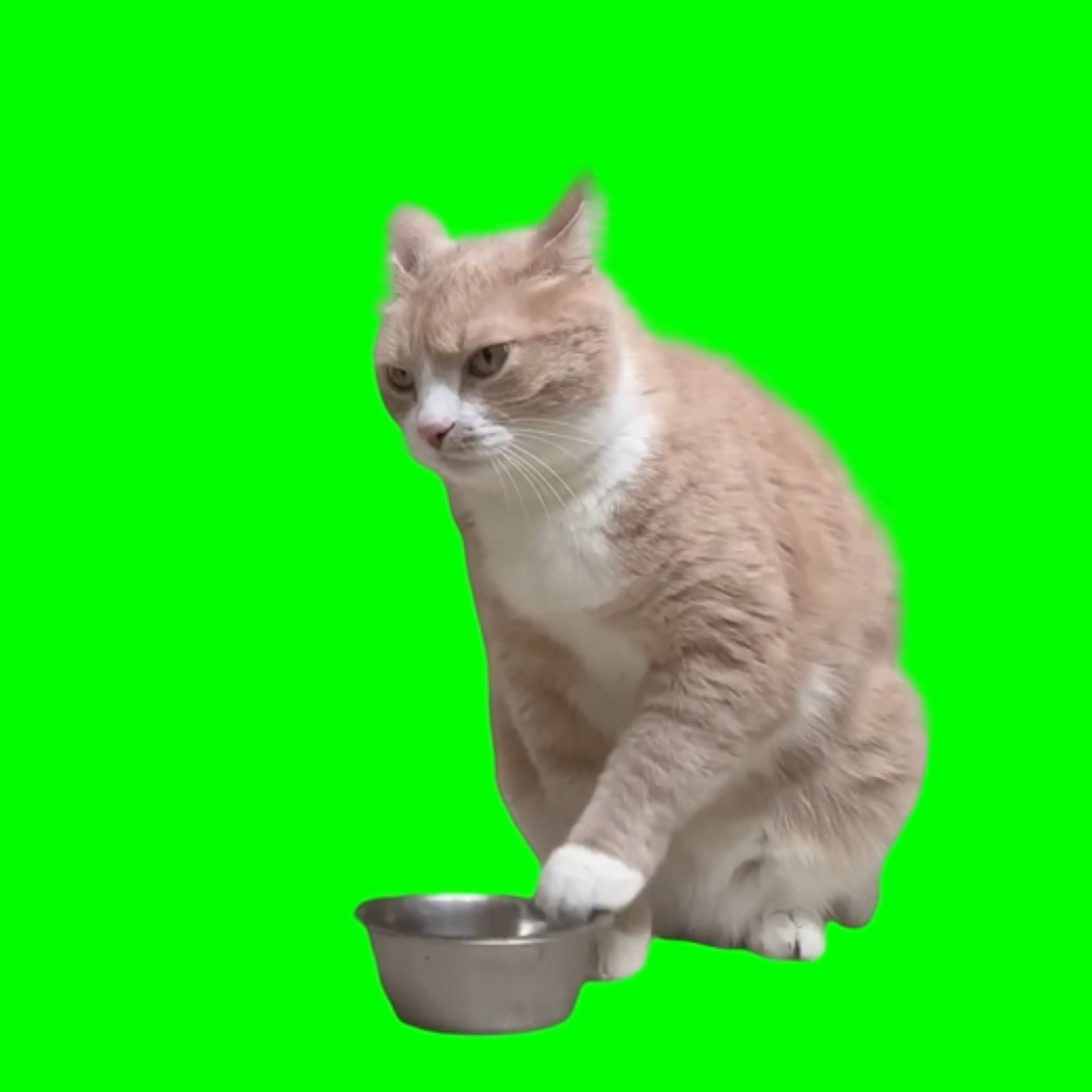 Green Screen Meme Template of a cat playing with an empty metal food bowl and making sounds with itSource: https://www.youtube.com/shorts/s9JRF3MsLUY