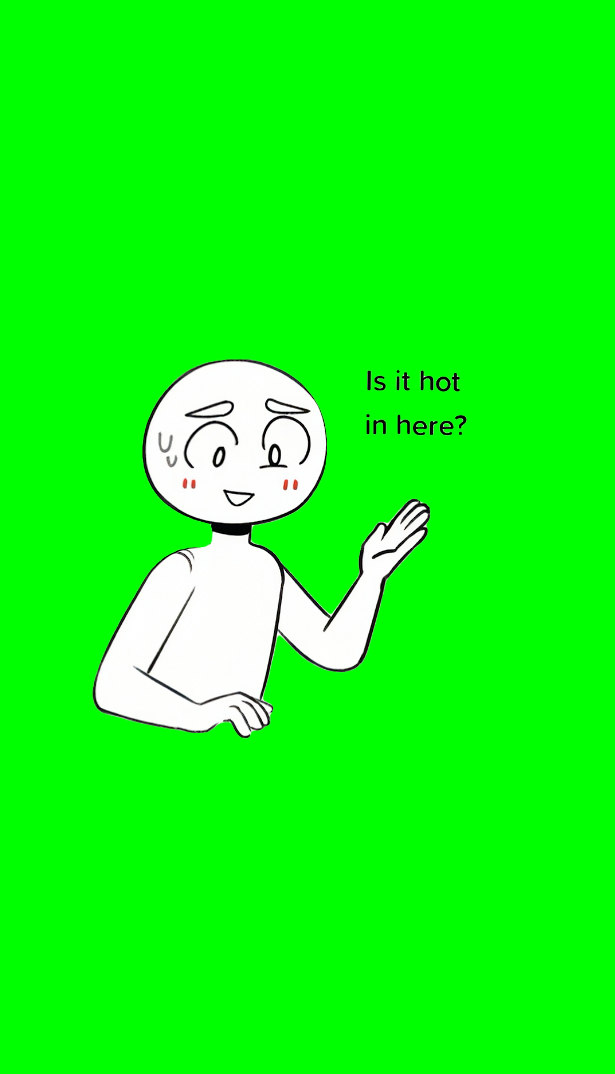 Green Screen Meme Template of a girl stick figure saying "Is it hot in here? Are you hot? I mean you are hot, I mean-" to her crush before leaving the room. Animation created by @cocoacreatesart on TikTok