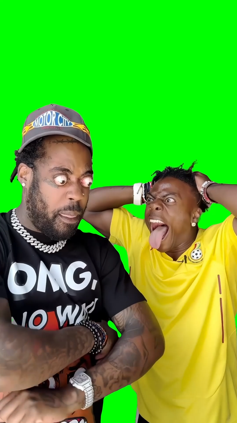 Green Screen Meme Template of IShowSpeed meeting Chef Bonez (@chefboybonez on Instagram), the Atlanta Man who can pop his eyes out; and the Atlanta Alien Spay Gawd (@spacegoddathug on Instagram)