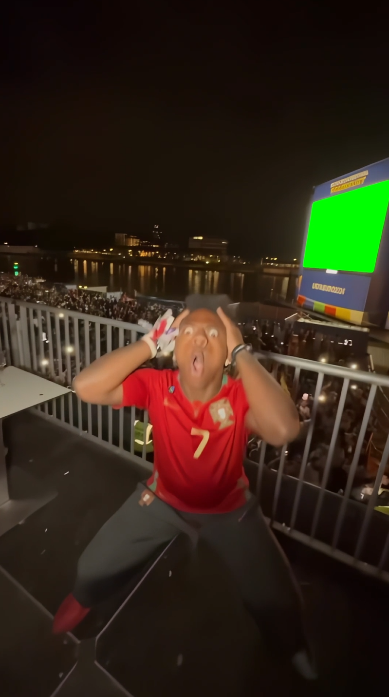 Green Screen Meme Template of IShowSpeed overreacting to a football match's penalty shootout between Portugal and Slovenia on a big screen in Frankfurt.