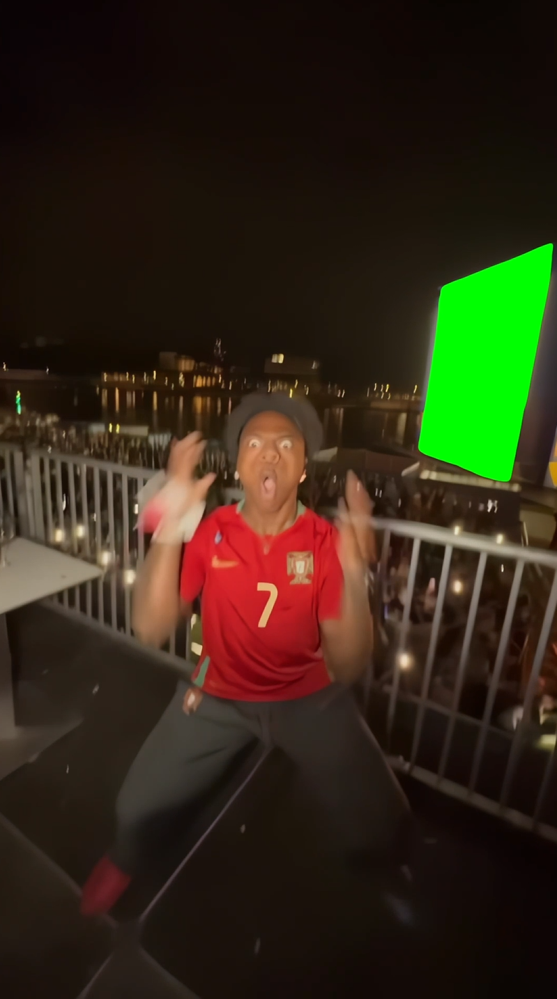 Green Screen Meme Template of IShowSpeed overreacting to a football match's penalty shootout between Portugal and Slovenia on a big screen in Frankfurt.