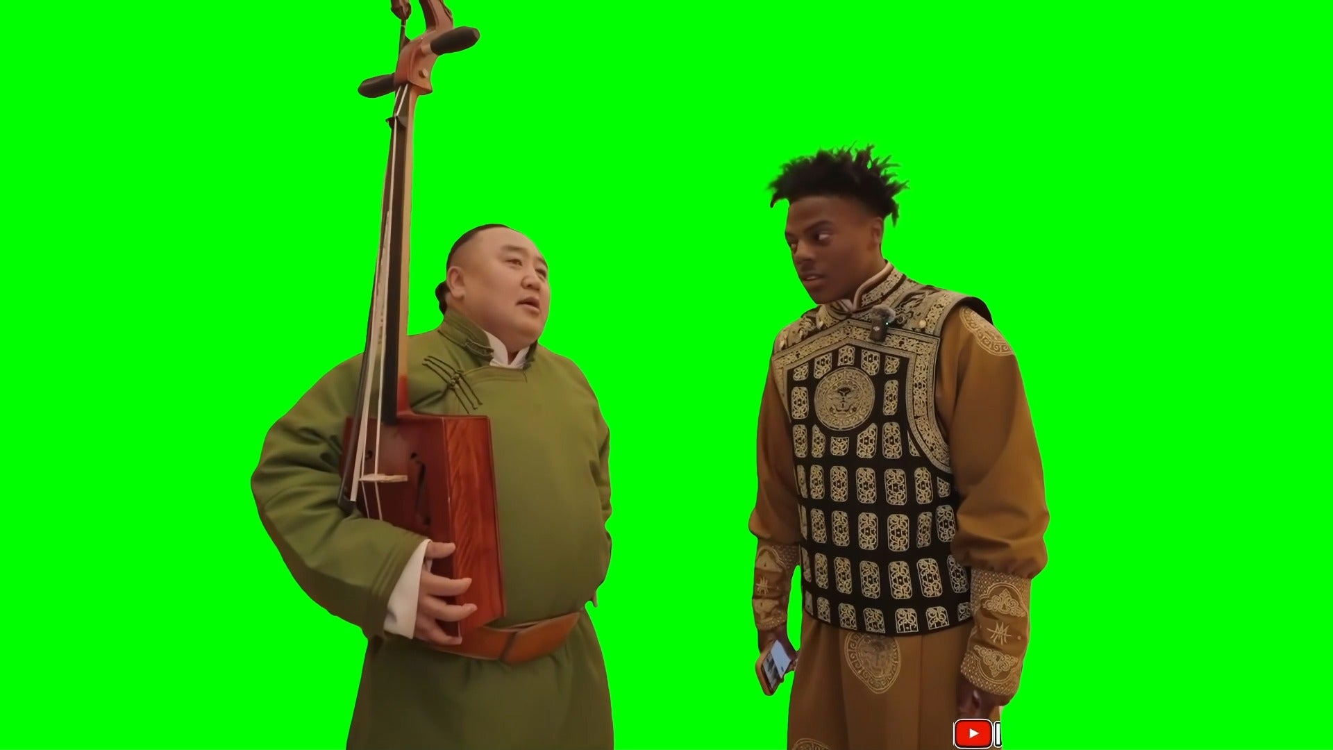 Green Screen Meme Template of a Mongolian throat singer singing a song to IShowSpeed, which surprises him