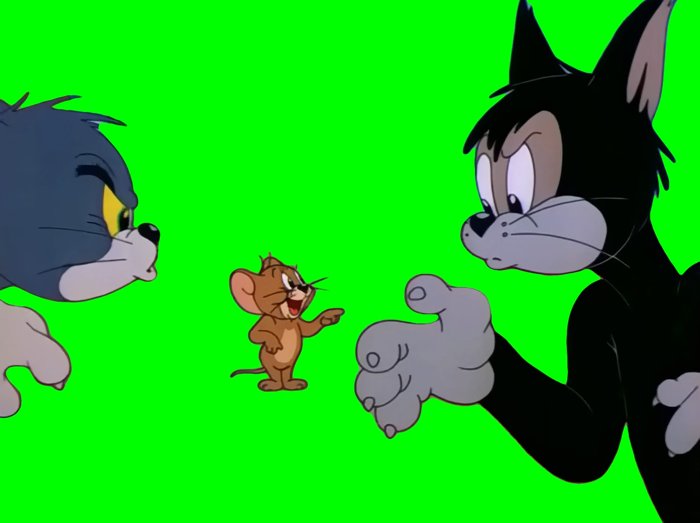 Green Screen Meme Template of Jerry choosing between Tom and Butch, picking Butch and goes inside his hand