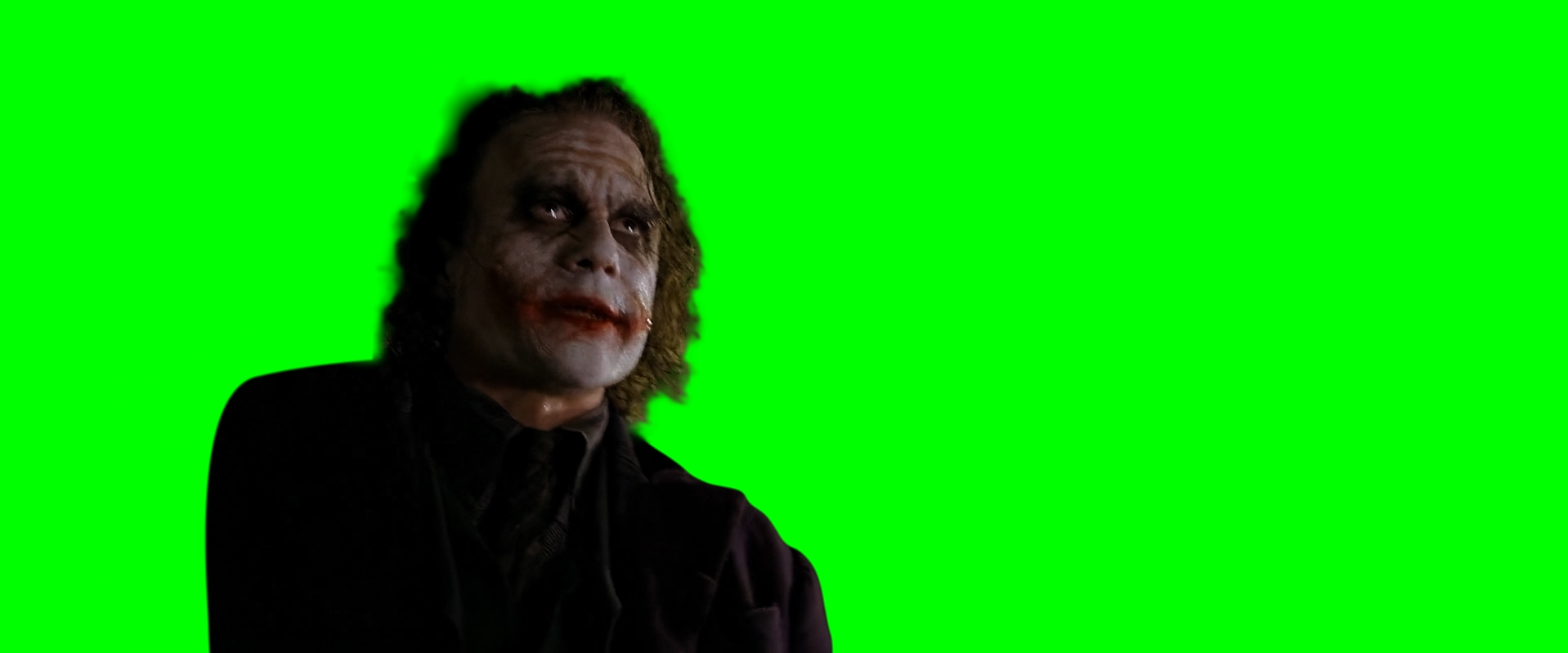Green Screen Meme Template of the Joker shooting at Batman while he rides his Batpod motorcycle and saying "HIT ME!" repeatedly daring Bruce Wayne to run over him
