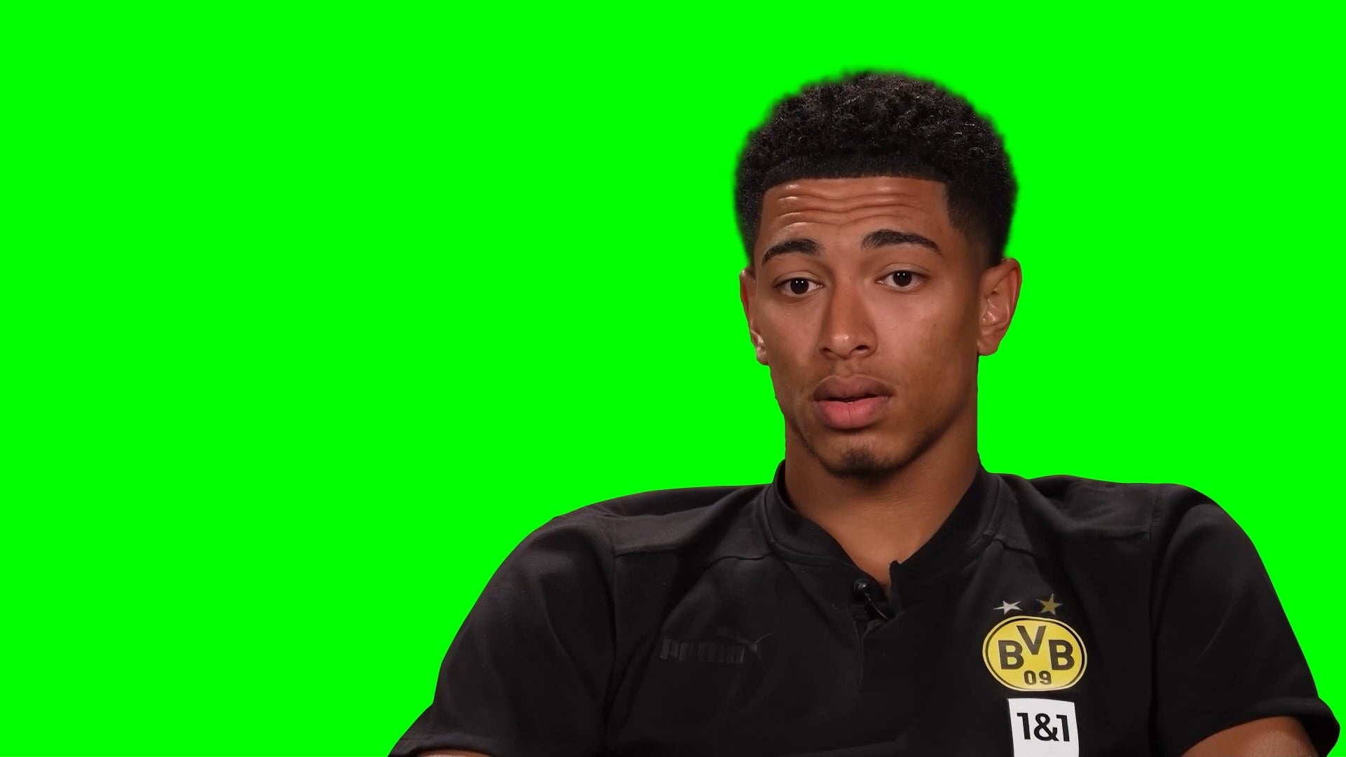 Green Screen Meme Template of Jude Bellingham thinking and staring when asked a question