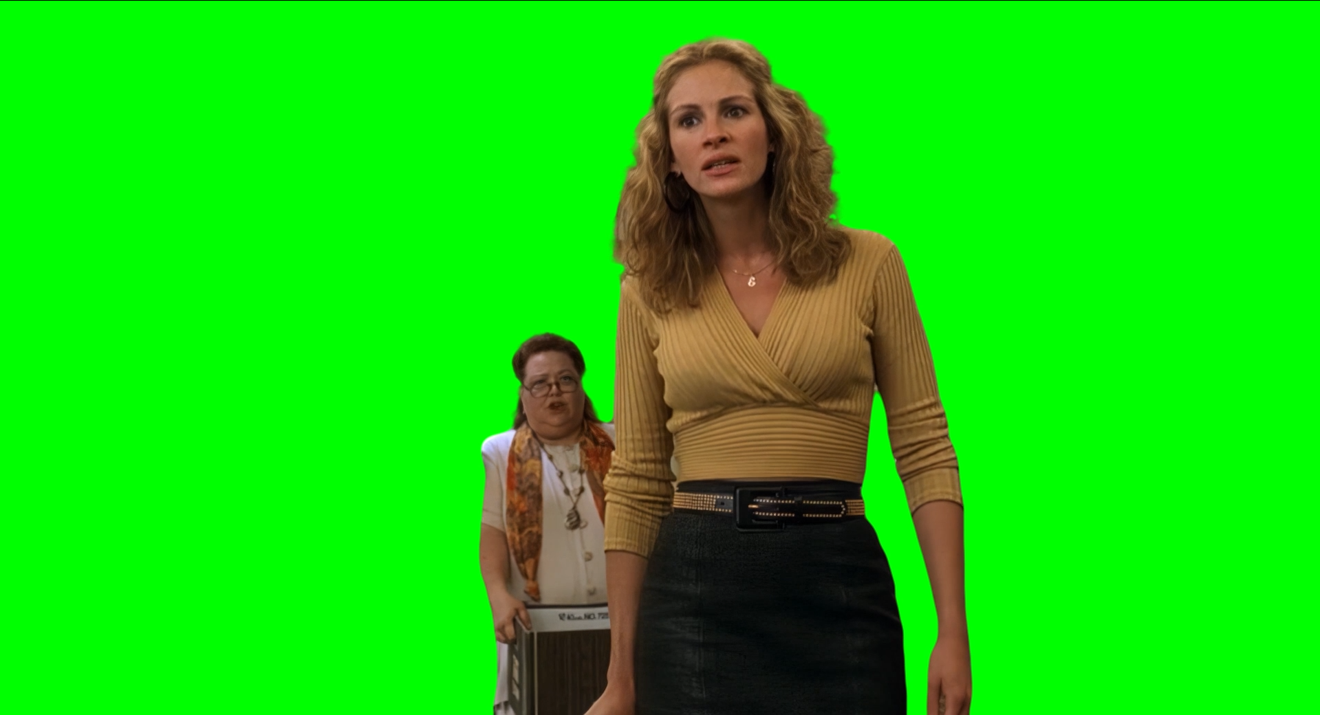 Julia Roberts saying "I'M NOT TALKING TO YOU, BITCH!" meme - Erin Brockovich movie (Green Screen)