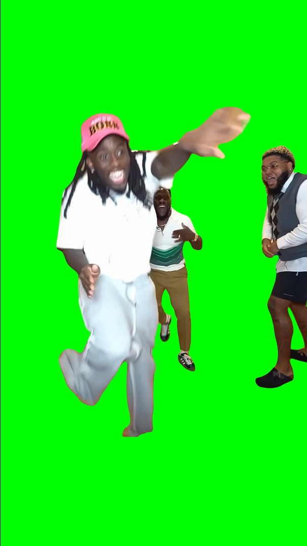 Green Screen Meme Template of Kai Cenat dancing with Kevin Hart and Druski to Yeah by Ne-Yo when they enter Kai's room to start the livestream