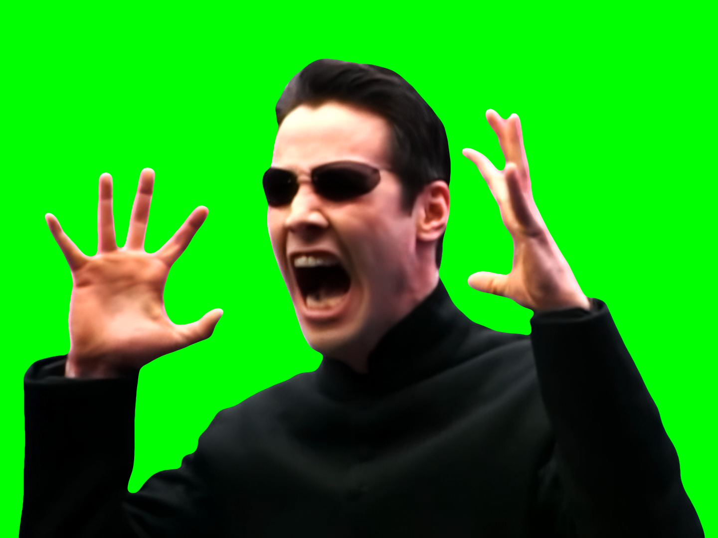 Green Screen Meme Template of Keanu Reeves Screaming in the behind the scenes of The Matrix: Reloaded