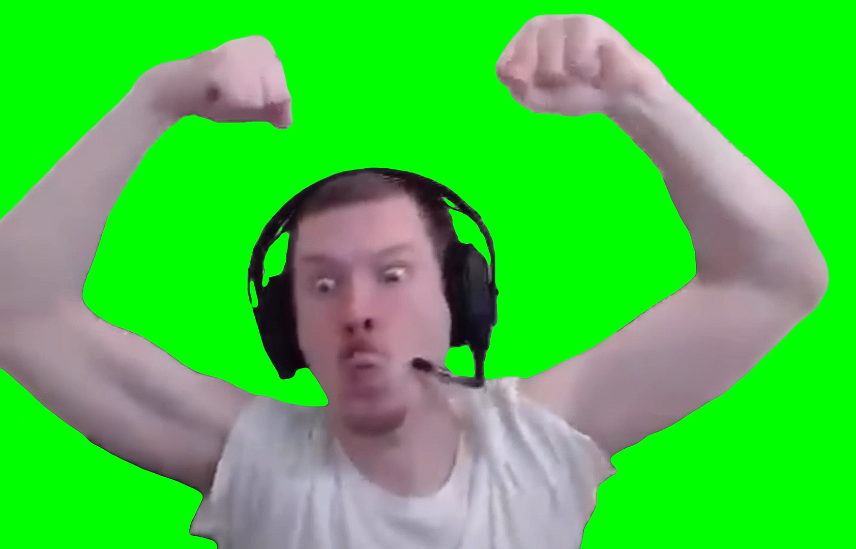 Green Screen Meme Template of KeshaEuw flexing his muscles in celebration as he hits 36 stacks in 36 minutes during a match of League of Legends