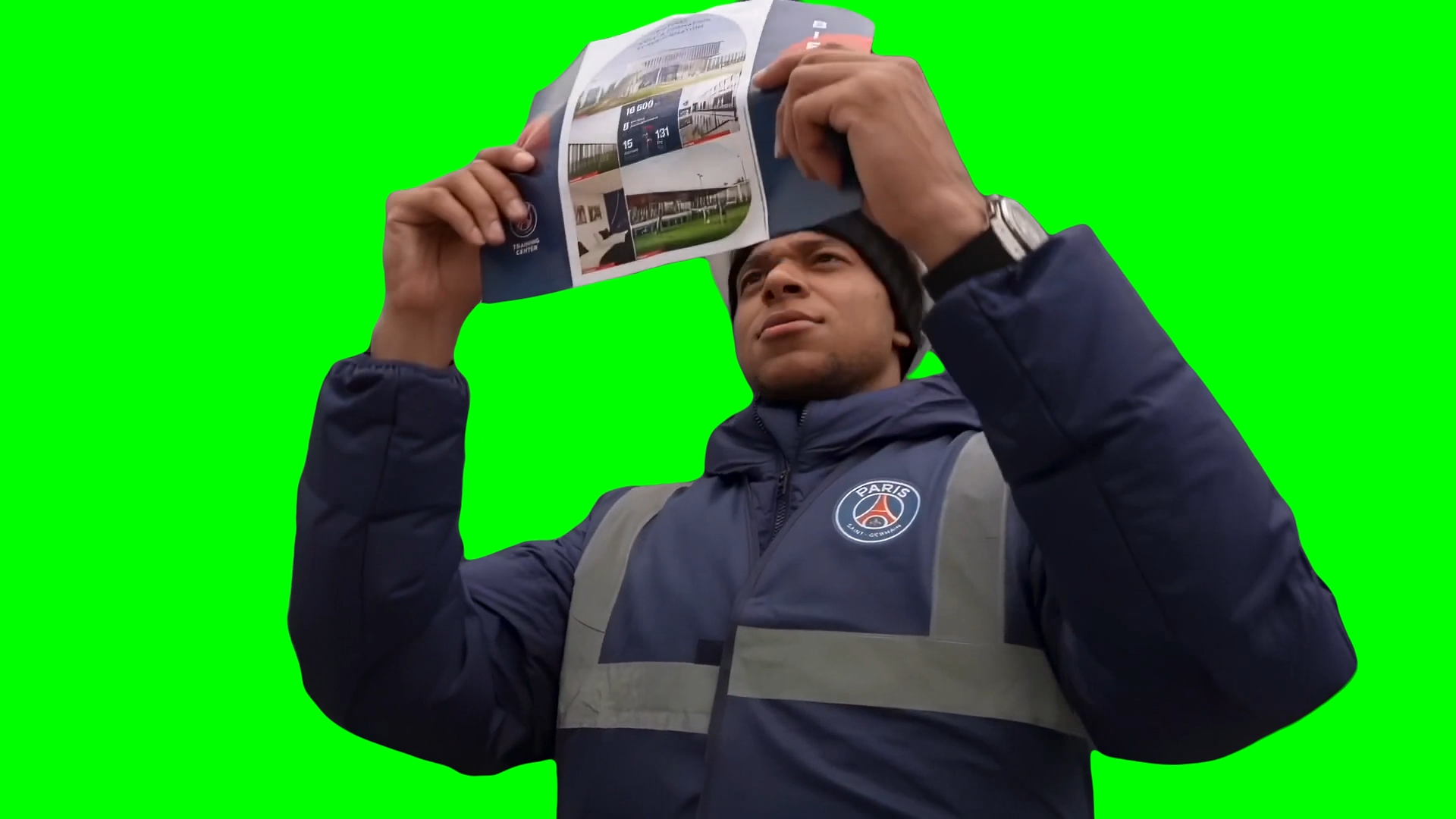 Green Screen Meme Template of Kylian Mbappe looking at a paper/a map while being confused and trying to find out what is written on the paper