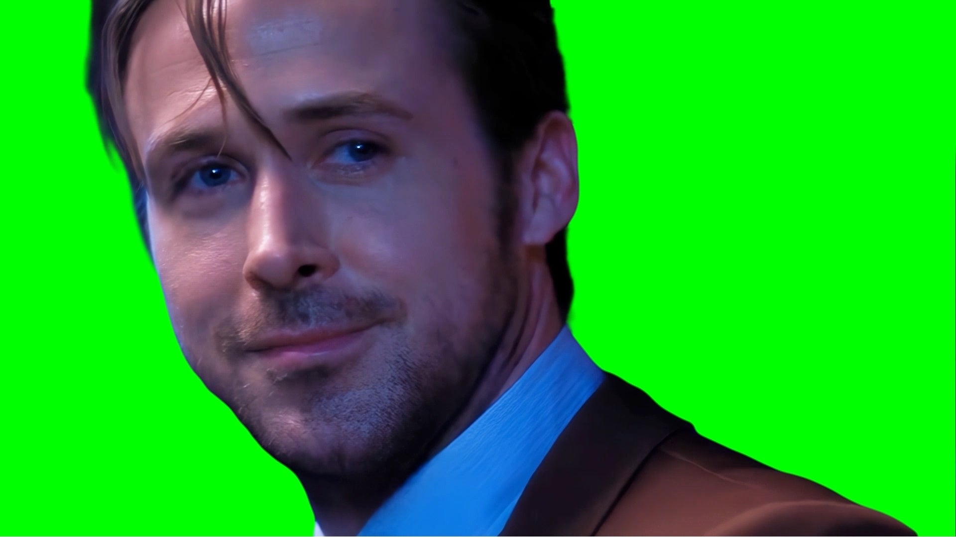 Green Screen Meme Template of Ryan Gosling and Emma Stone smiling at each other in the ending of the La La Land movie
