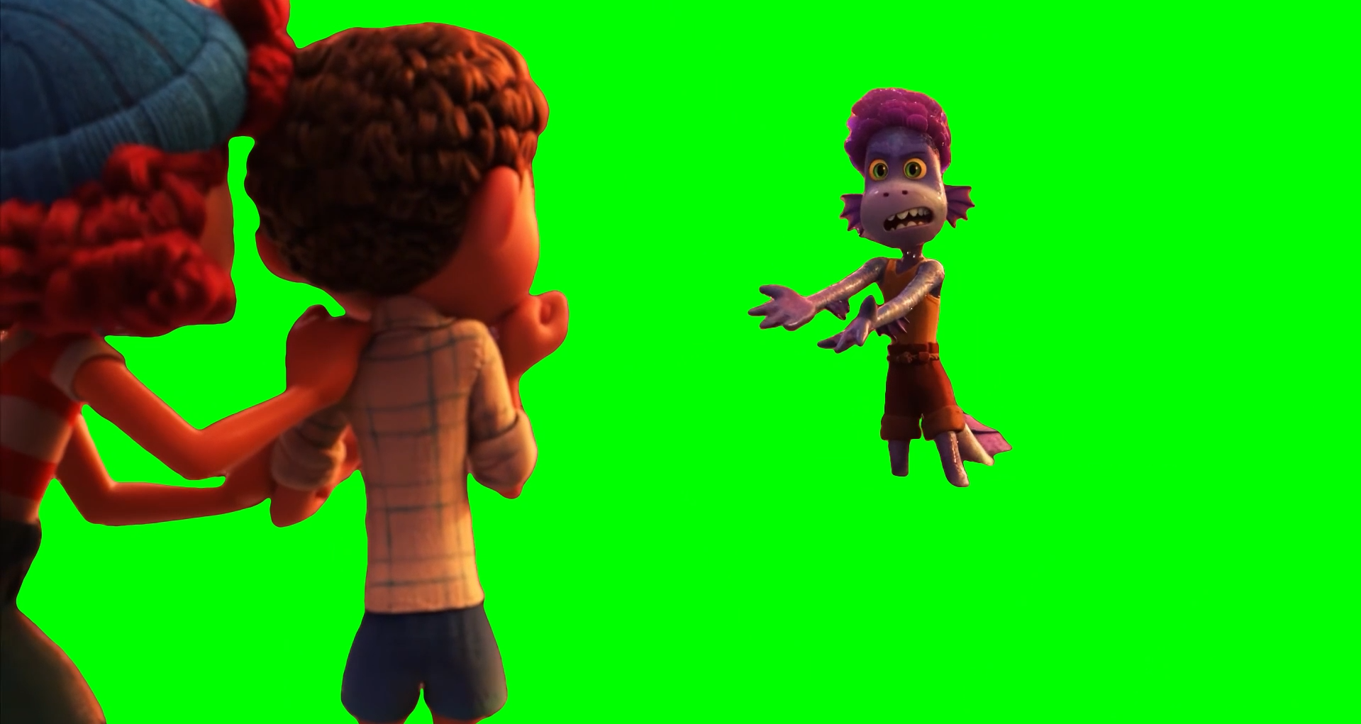 Green Screen Meme Template of Luca screaming "SEA MONSTER!" at Alberto in the Luca movie