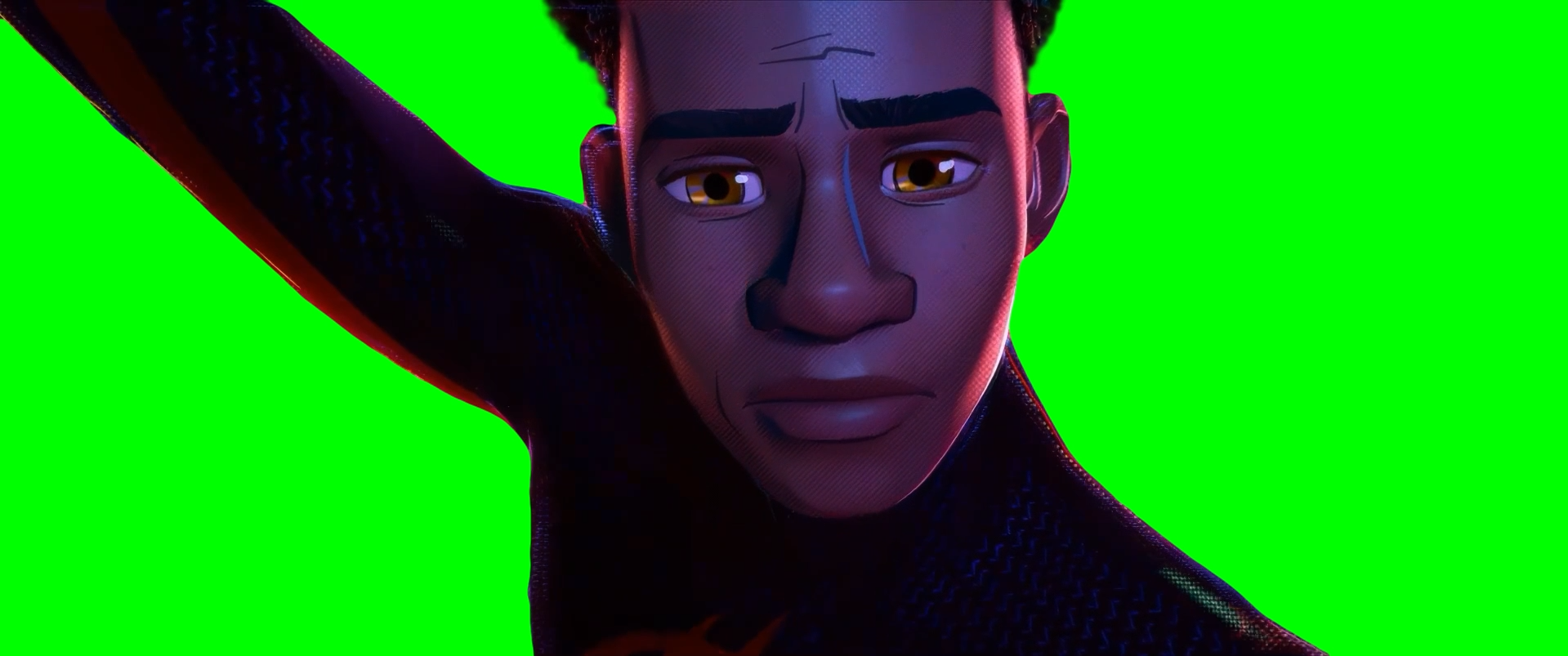 Green Screen Meme Template of Miles Morales running into a portal that takes him across the multiverse of spider-man universes